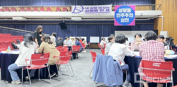 지난 14일 경남여성단체연합을 비롯한 연대단체들은 경남도교육청 교육연수원 홍익관에서 "빛의 혁명에 성평등으로 답하라"는 주제로 긴급토론회를 열었다.