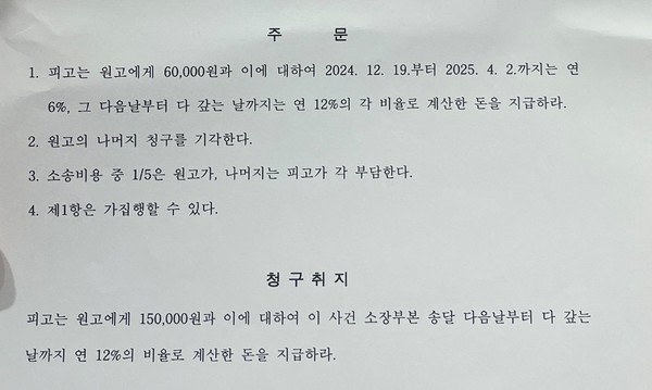 한편, B씨는 이에 대해 “판결문을 보면 20만 원의 소액재판 비용 청구 부분은 상대 측에서 임의로 산정한 것”이라고 주장했다.